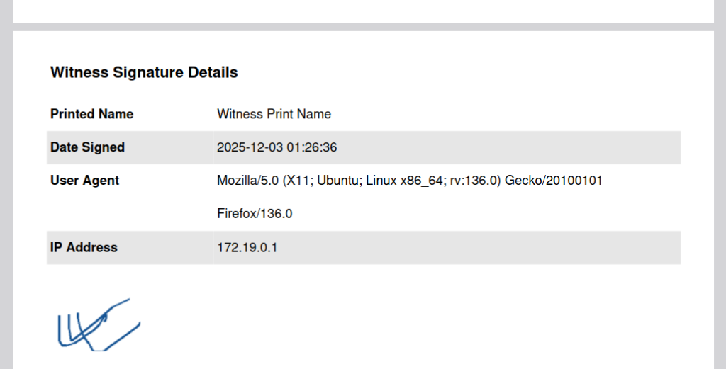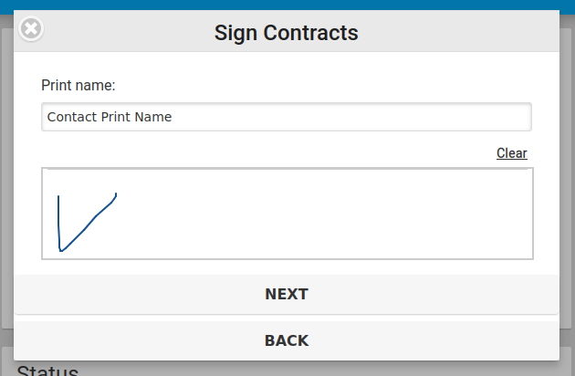 This signature will be displayed in the PDF version of the contract on the next page after the customer’s signature.